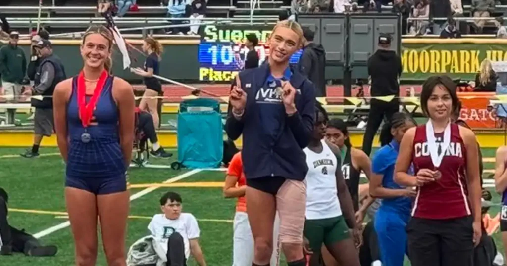 Reese Hogan, a high school athlete from California, stepped onto the first-place podium after finishing second, quietly protesting what she sees as unfair competition against a transgender athlete. At the CIF Southern Section Finals on…