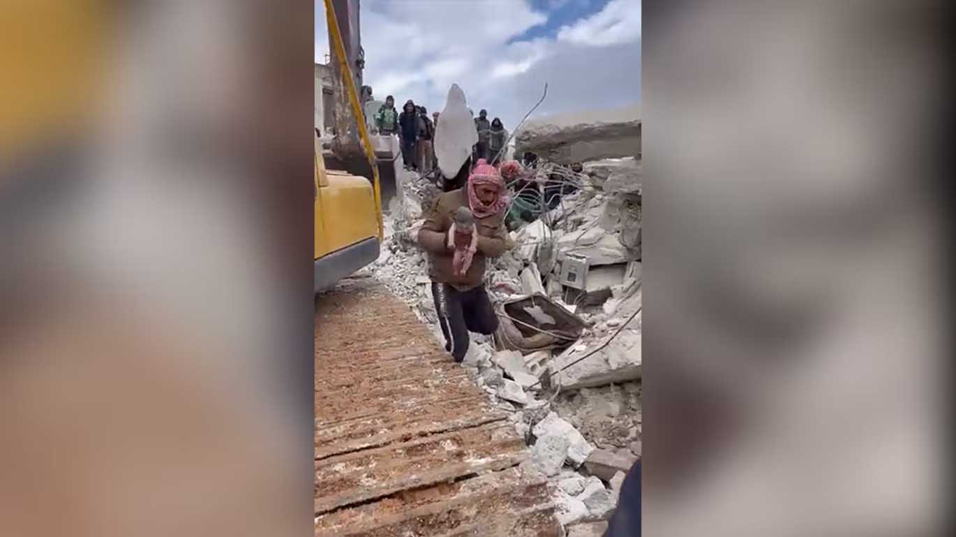 In another photo, a baby in Syria was saved from the rubble of a building after the earthquake. The baby was still connected to her dead mother through the umbilical cord. The mother, unfortunately, passed away, but the baby was safely rescued.