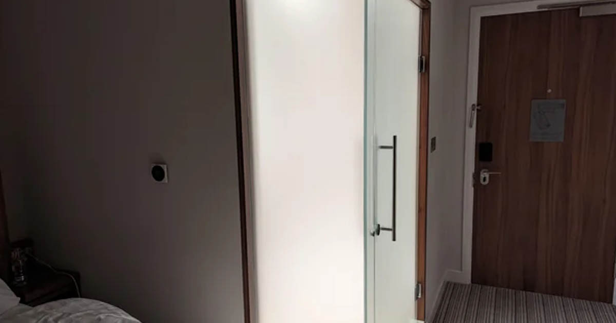 Recently, a Reddit user shared a humorous and relatable experience while staying at a hotel. His hotel room had a bathroom with a glass door, which let in too much light at night. The traveler posted a picture of the brightly lit bathroom with the caption: “This hotel bathroom when you turn the bathroom light on at night.”