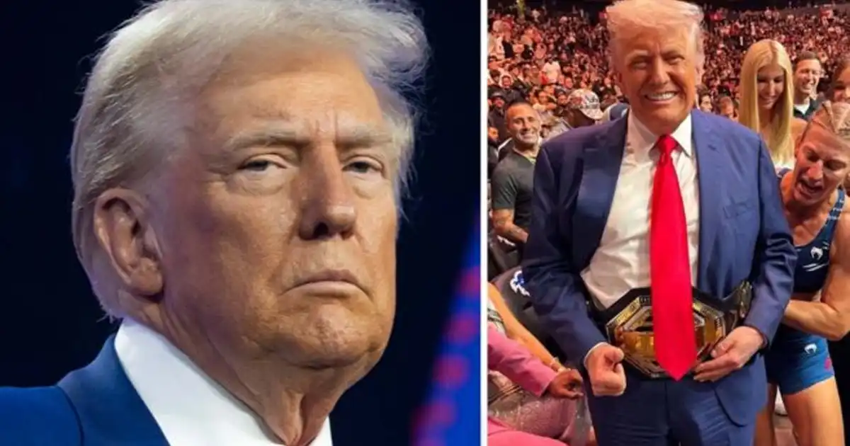 When Donald Trump appeared at a UFC event in Newark, New Jersey, on June 9, fans were more focused on his outfit than the fighters. In a photo showing MMA champion Kayla Harrison placing a title belt around Trump’s waist, a line running down his pant leg triggered a firestorm of online speculation.